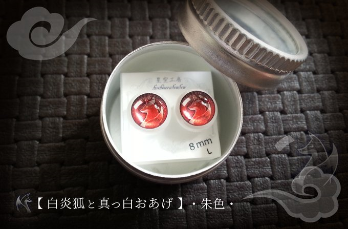 ・星空工房製 inari専用レジンアイ 【白炎狐と真っ白おあげ・朱色】